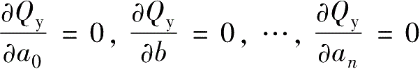 将 Q 分别对 a 、 b 求偏导数并令其等于0,便得到如下方程组