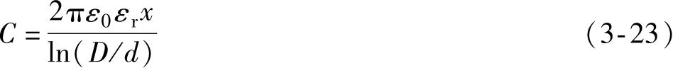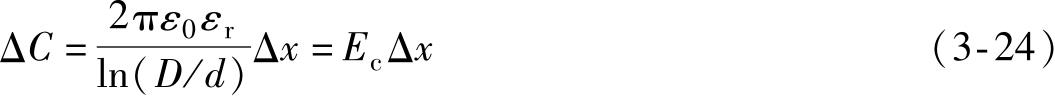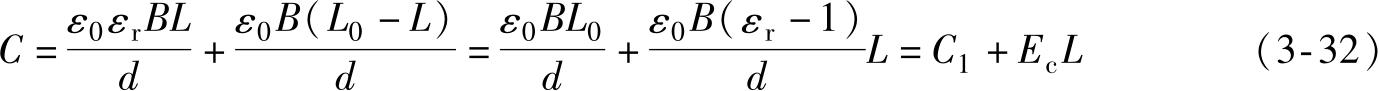 当沿电容器的轴线方向移动圆柱平移式电容传感器的活动极板时(图3-12b),利用高斯积分,可得到该电容器的电容量