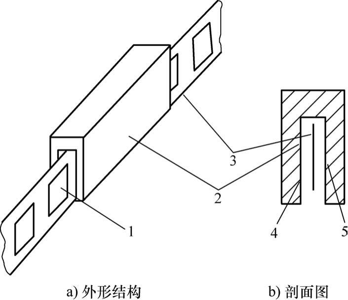 1—矩形窗口 2—测量装置 3—金属带4—发射电极 5—接收电极