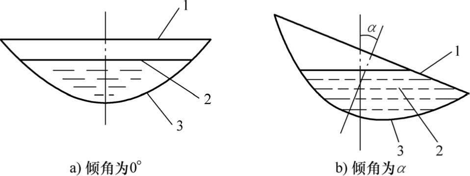 倾角测量一直是工程测试领域的一个难题,然而,近些年发展起来的电容式倾角传感器实现了用一种经济、简单的方法解决一个相对较难的倾角测量问题。图3-20是电容式倾角传感器的工作原理简图。电容器的上极板1是一金属平板,下极板3是一种球形极板 (球的一部分),两极板的连接处用绝缘材料隔开并将不导电的特制液体介质密封在两极板所围的空腔中,液体介质并不注满两极板所围的空腔。