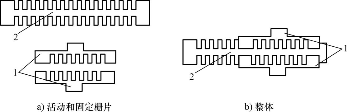 图3-17 活动极板与固定极板均为栅片的容栅式传感器