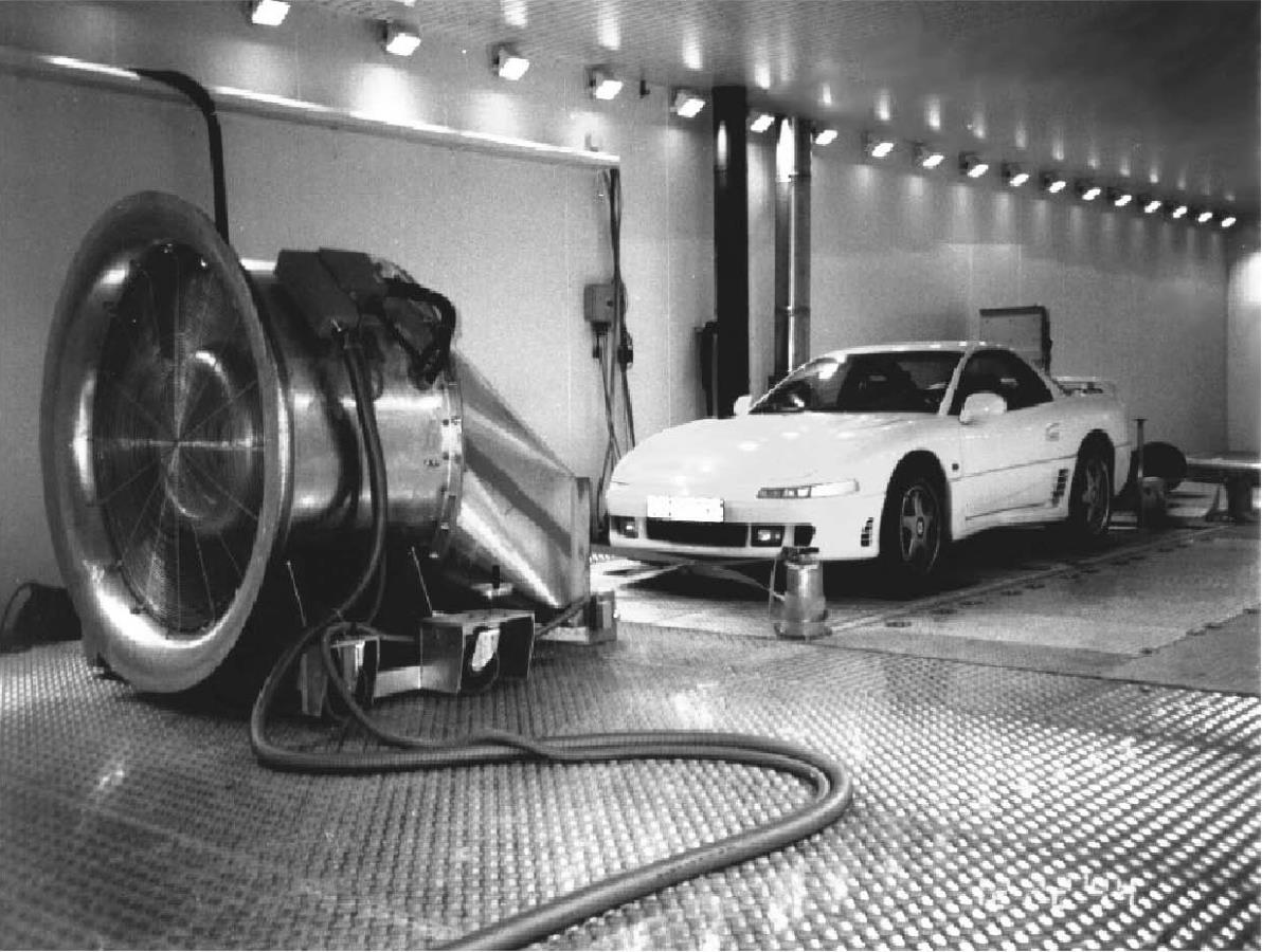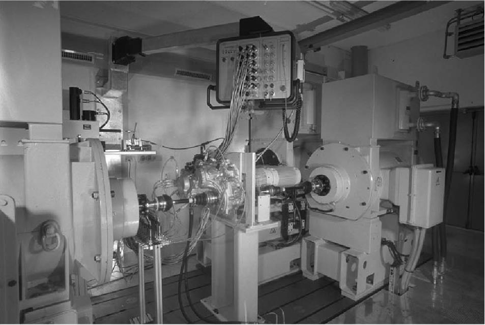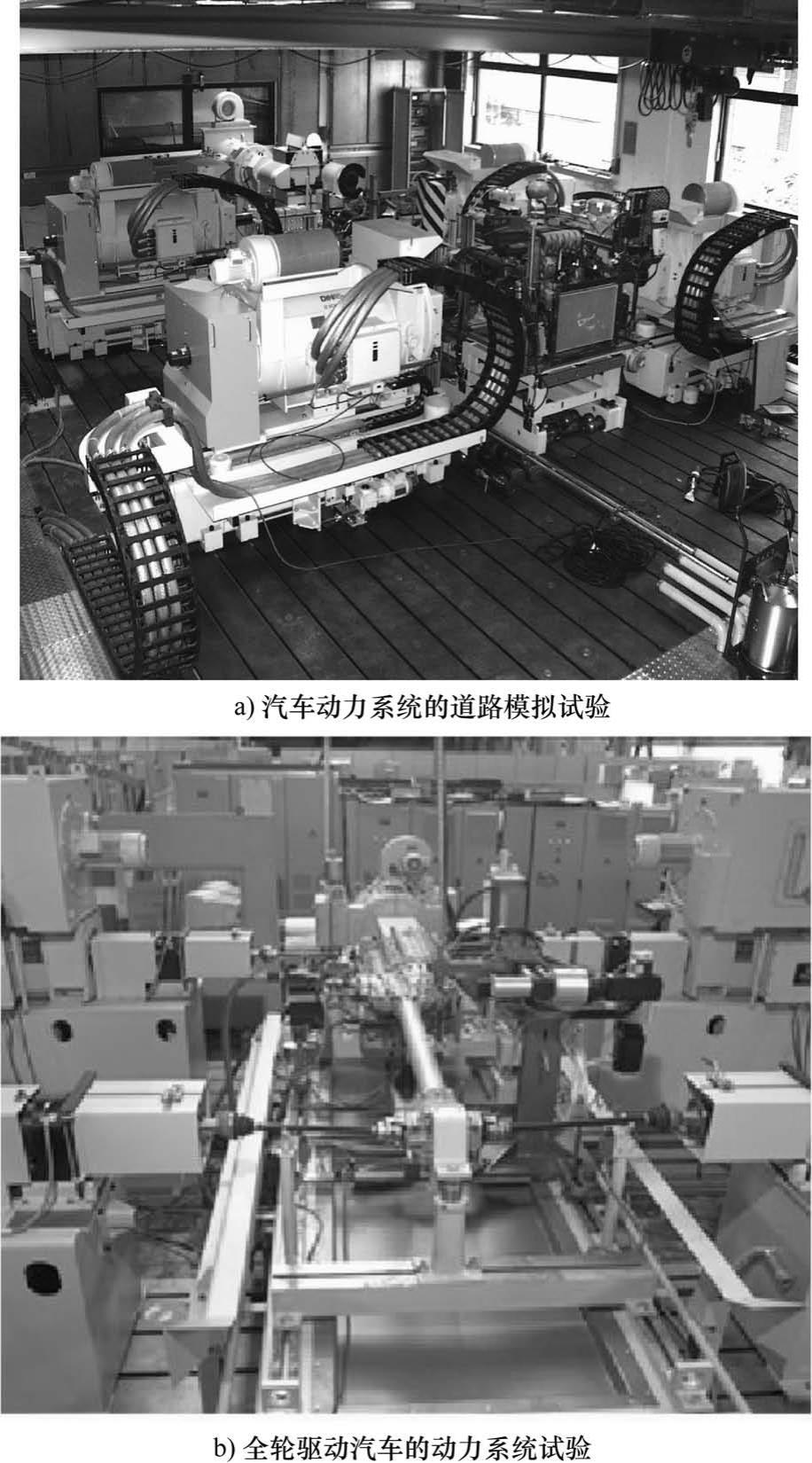 室内台架试验的重要特征在于,试验不受环境的影响,台架可24h运行,特别适合于汽车性能的对比试验和可靠性、耐久性试验。室内台架试验的突出特点是试验效率高。室内台架试验不仅适用于汽车的总成部件,也适用于汽车整车。图1-2~图1-4是汽车整车和发动机的室内台架试验场景照片。