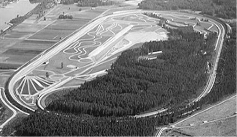 汽车试验场试验越来越受到汽车界的重视,其原因是汽车试验场上可以设置各种不同的路面,如扭曲路面、比利时砌石路面、高速环道、汽车性能试验专用跑道等(图1-5)。在汽车试验场上,可在不受道路交通影响的情况下完成汽车各项性能试验,尤其是汽车的可靠性、耐久性试验和环境适应性试验。由于在汽车试验场上可以进行高强化水平的试验,因此可以大大地缩短试验周期。