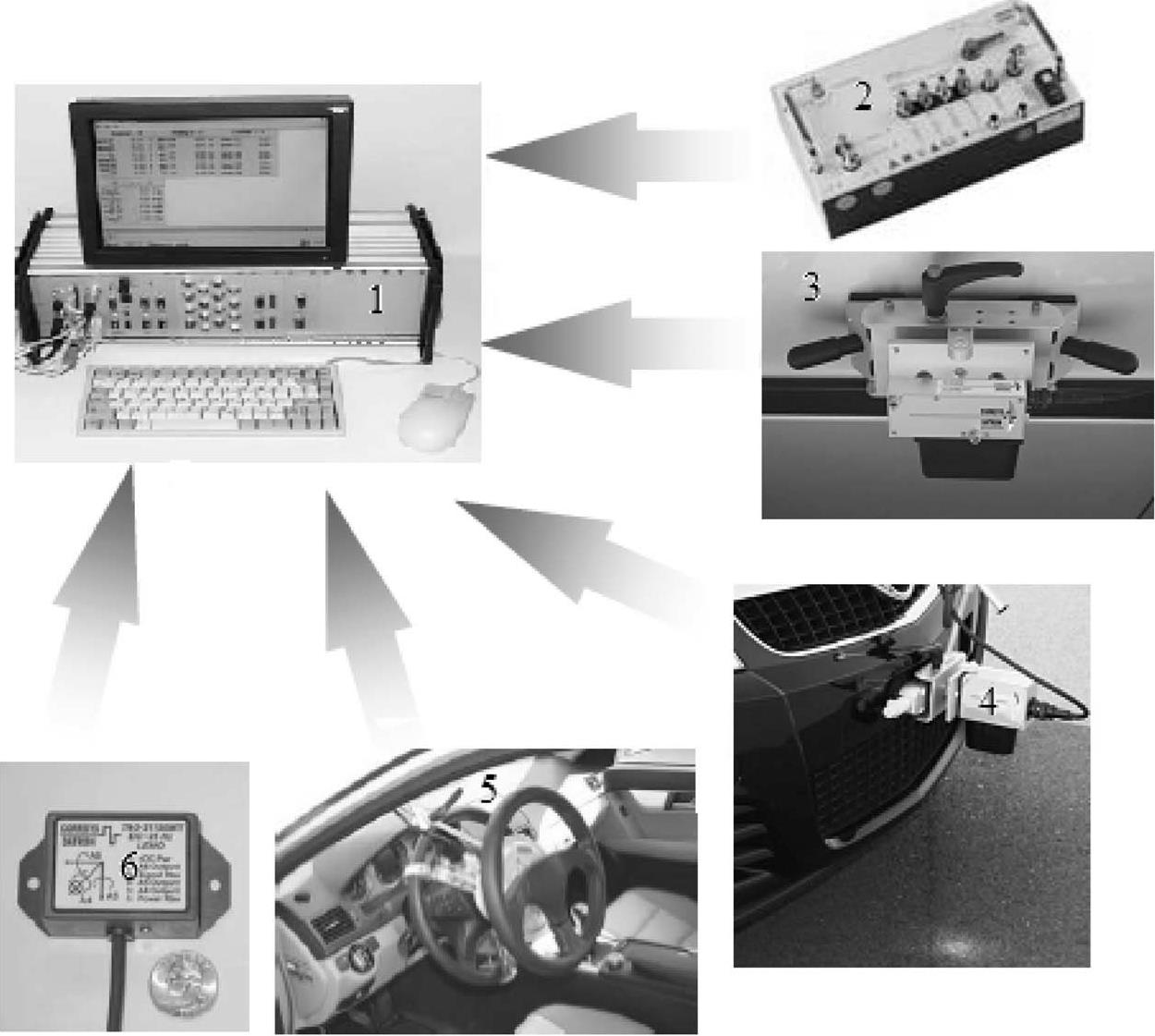 1—数据采集与数据处理系统 2—燃油流量传感器 3—高度传感器4—双向速度传感器 5—转向盘转角/转矩传感器 6—陀螺仪