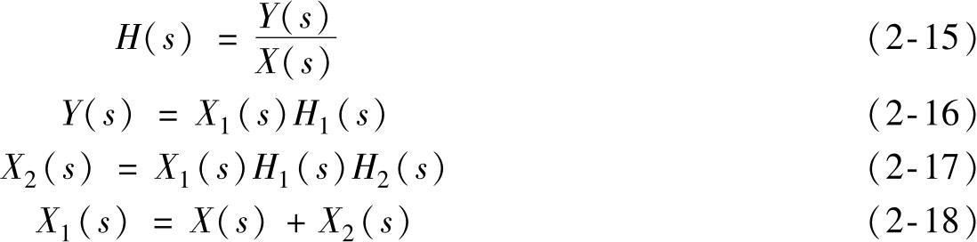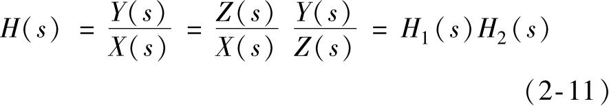 (1)串联系统的传递函数 图2-5是 H 1 ( s )和 H 2 ( s )组成的串联系统,设其传递函数为 H ( s ),由传递函数的定义可得