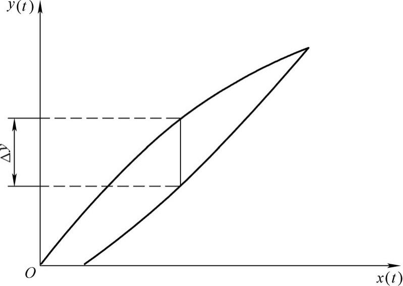 回程误差又称迟滞性。在测试过程中,经常会出现正向输入(输入由小到大)所得到的输出规律与反向输入(输入由大到小)系统的输出规律不一致(图2-3),二者之间的差值称为回程误差。