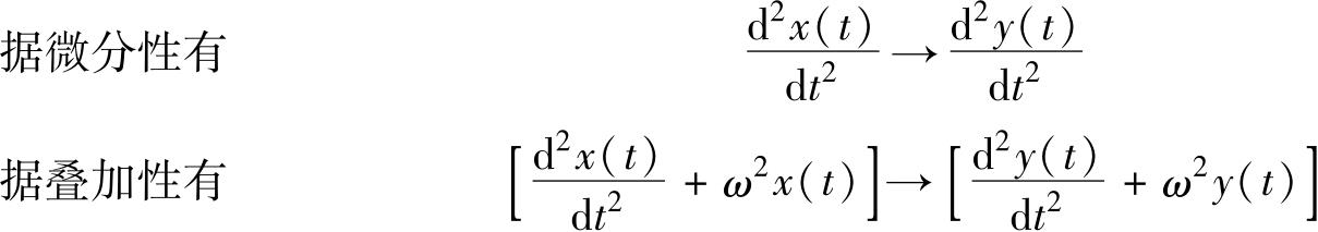 (5)频率保持性 若系统的输入为某一频率的简谐函数 x ( t )= x 0 e j ωt ,则系统的稳态输出亦是与之频率相同的简谐函数,只是幅值和相位有所不同。这一性质简单证明如下: