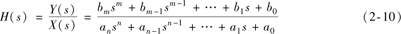 工程中的试验系统一般均为稳态系统,其传递函数分母中 s 的幂次数总是高于分子中 s 的幂次数,即 n > m 。因此,分母 s 的幂次 n 代表微分方程的阶数。 n =1, n =2, n =3,…,所对应的系统分别称为一阶系统,二阶系统,三阶系统……