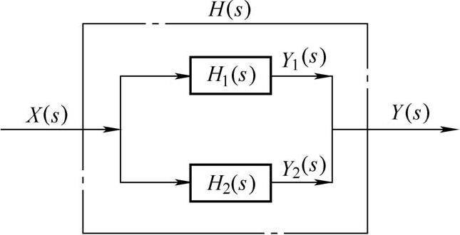(2)并联系统的传递函数 图2-6是一并联系统,其传递函数 H ( s )为