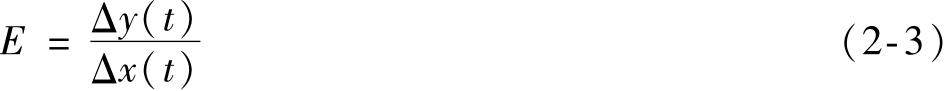 输入量的变化Δ x ( t )所引起输出量变化Δ y ( t )的大小,称为灵敏度,用 E 表示,即