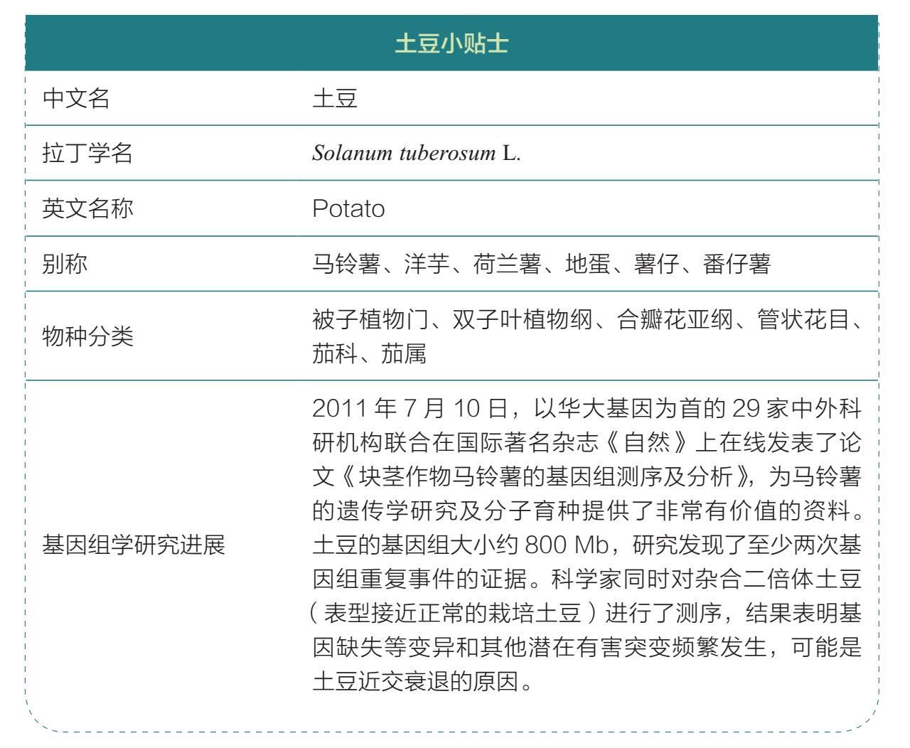4. The Potato Genome Sequencing Consortium. Genome sequence and analysis of the tuber crop potato[J]. Nature , 475,2011,July, 189–195.