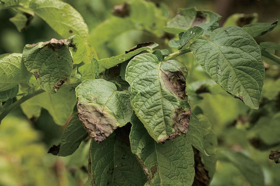 得了晚疫病的土豆叶子,叶片枯萎发黑
