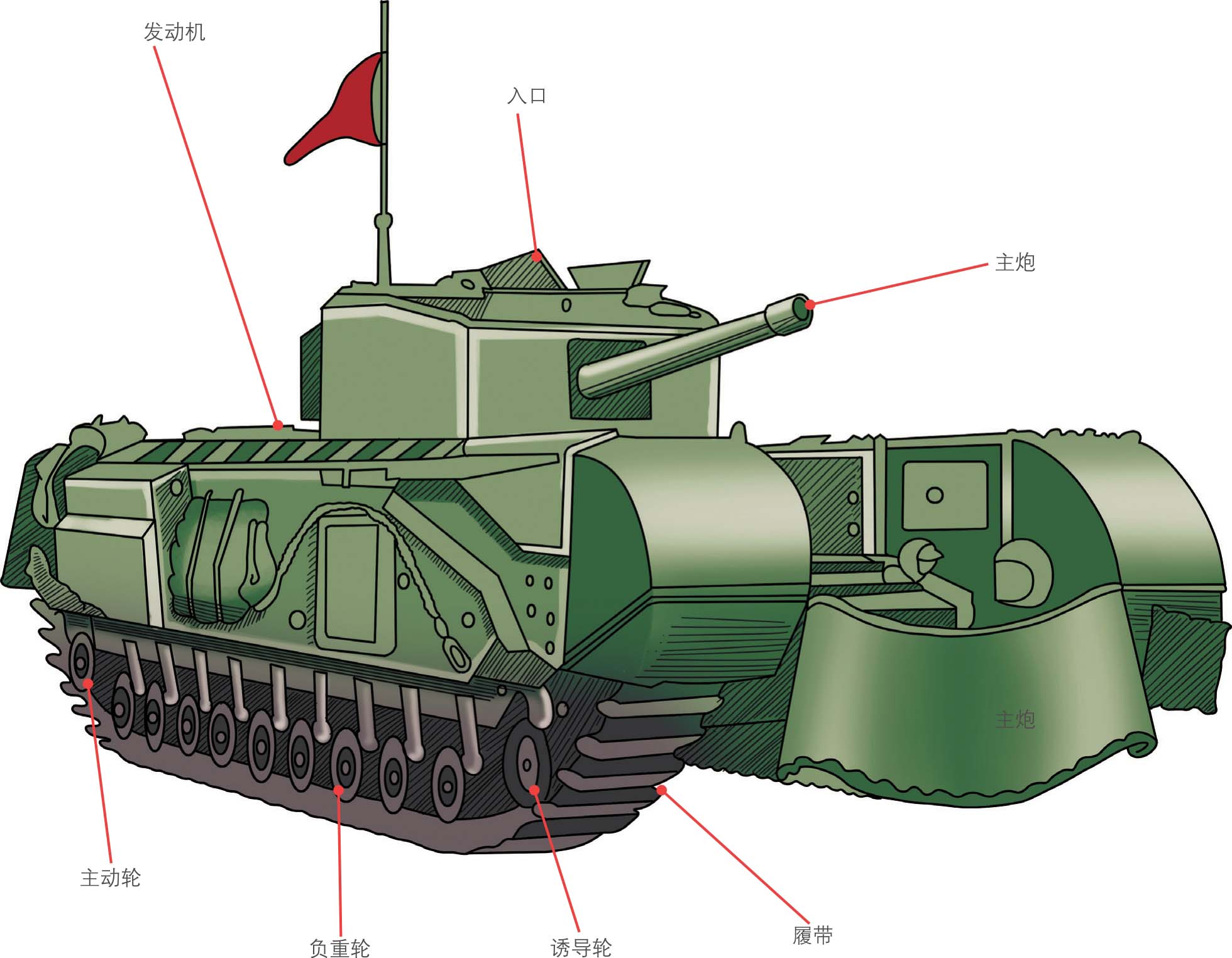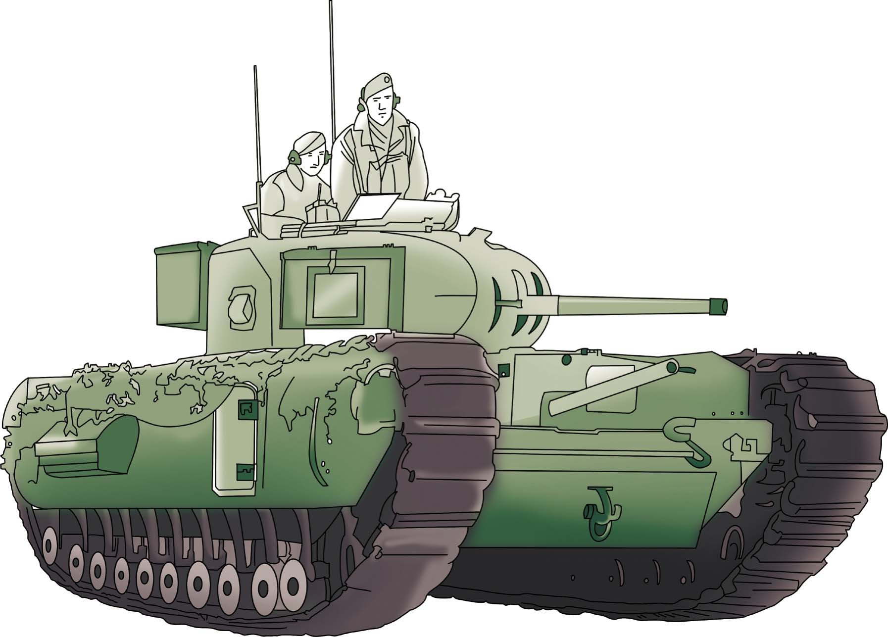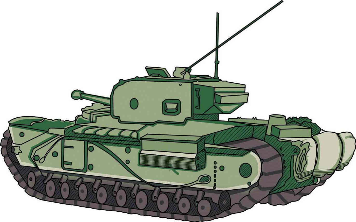 “丘吉尔”步兵坦克型号十分繁杂,共有18种车型,它们在战斗状态中负重接近40吨。