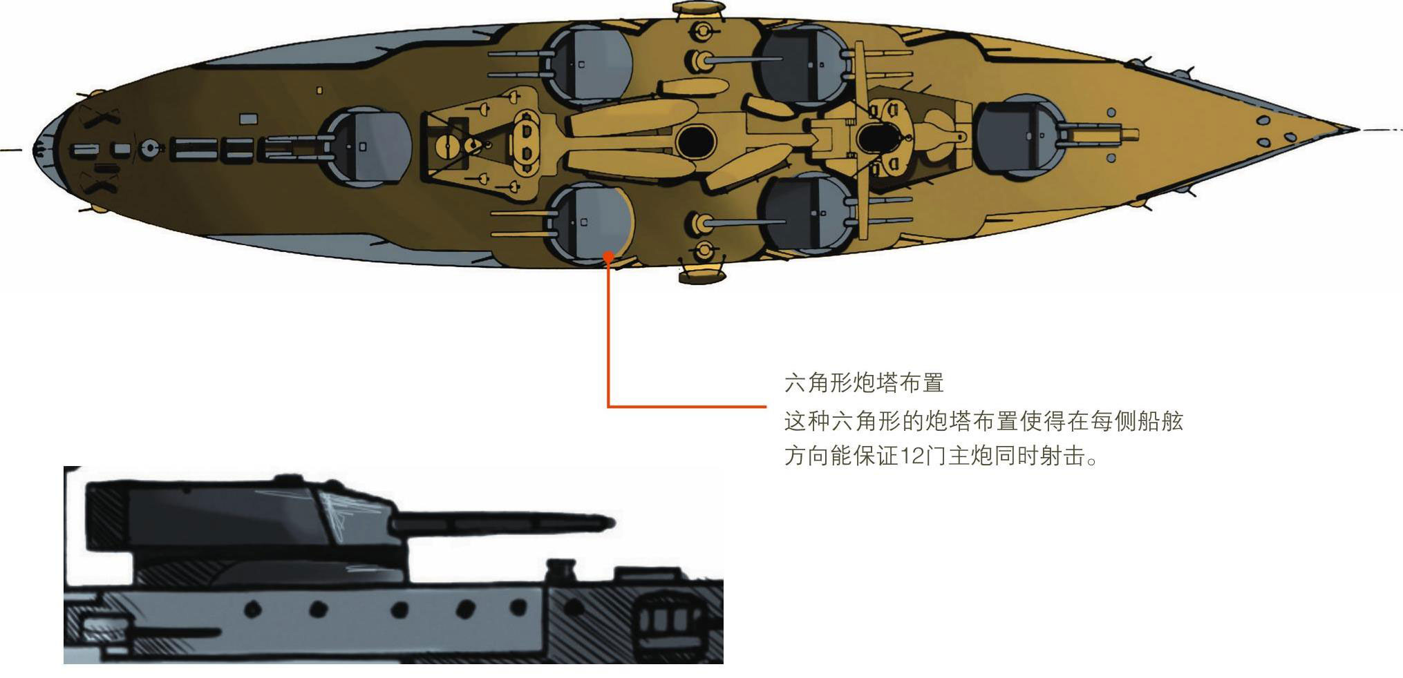 “拿骚”号战列舰六角形布局炮塔顶视图