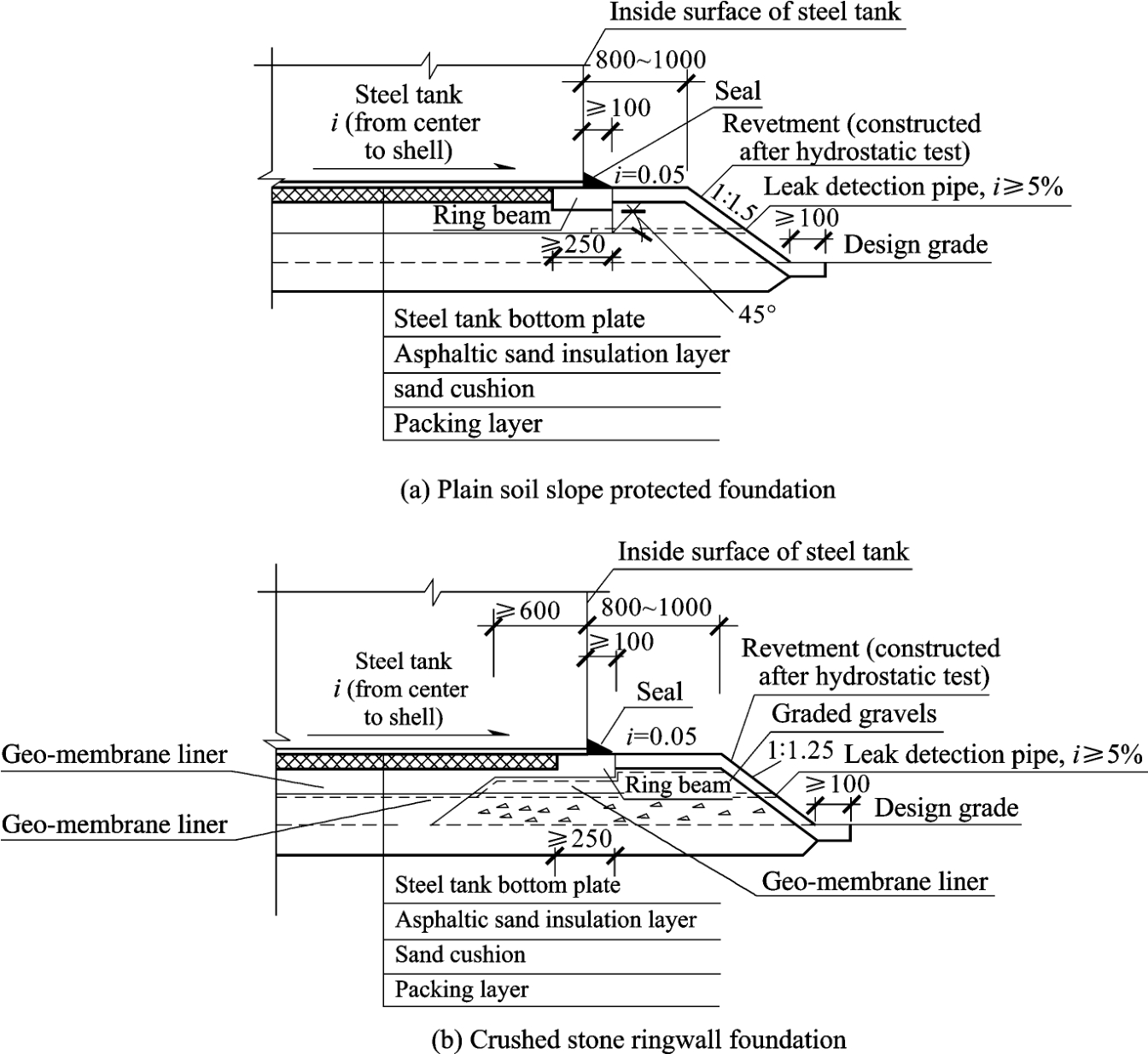 4 When there are field constrains and the tank is designed with special requirements,ringwall foundation shall be selected(Figure 3.2.3-2).