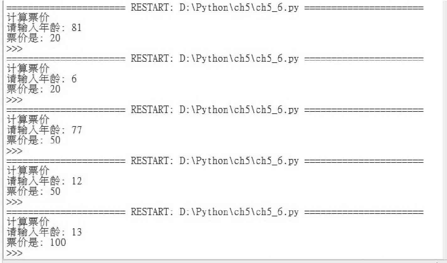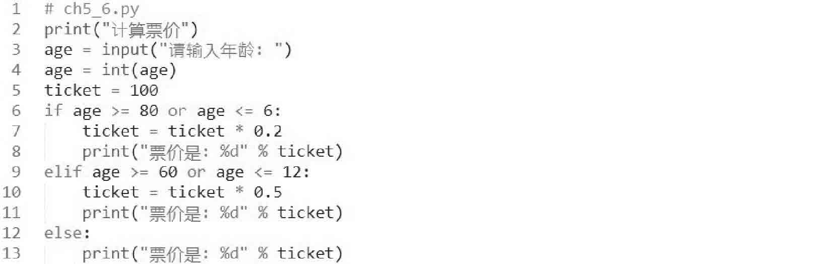 程序实例ch5_6.py:有一地区的票价收费标准是100元。
