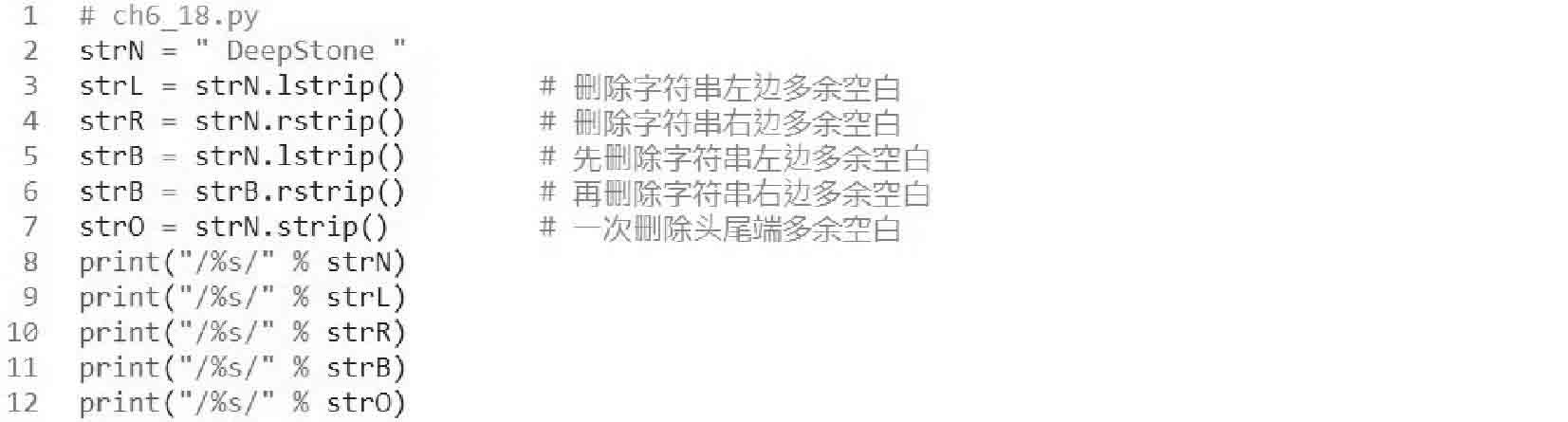 程序实例ch6_18.py:删除开始端与结尾端多余空白的应用。