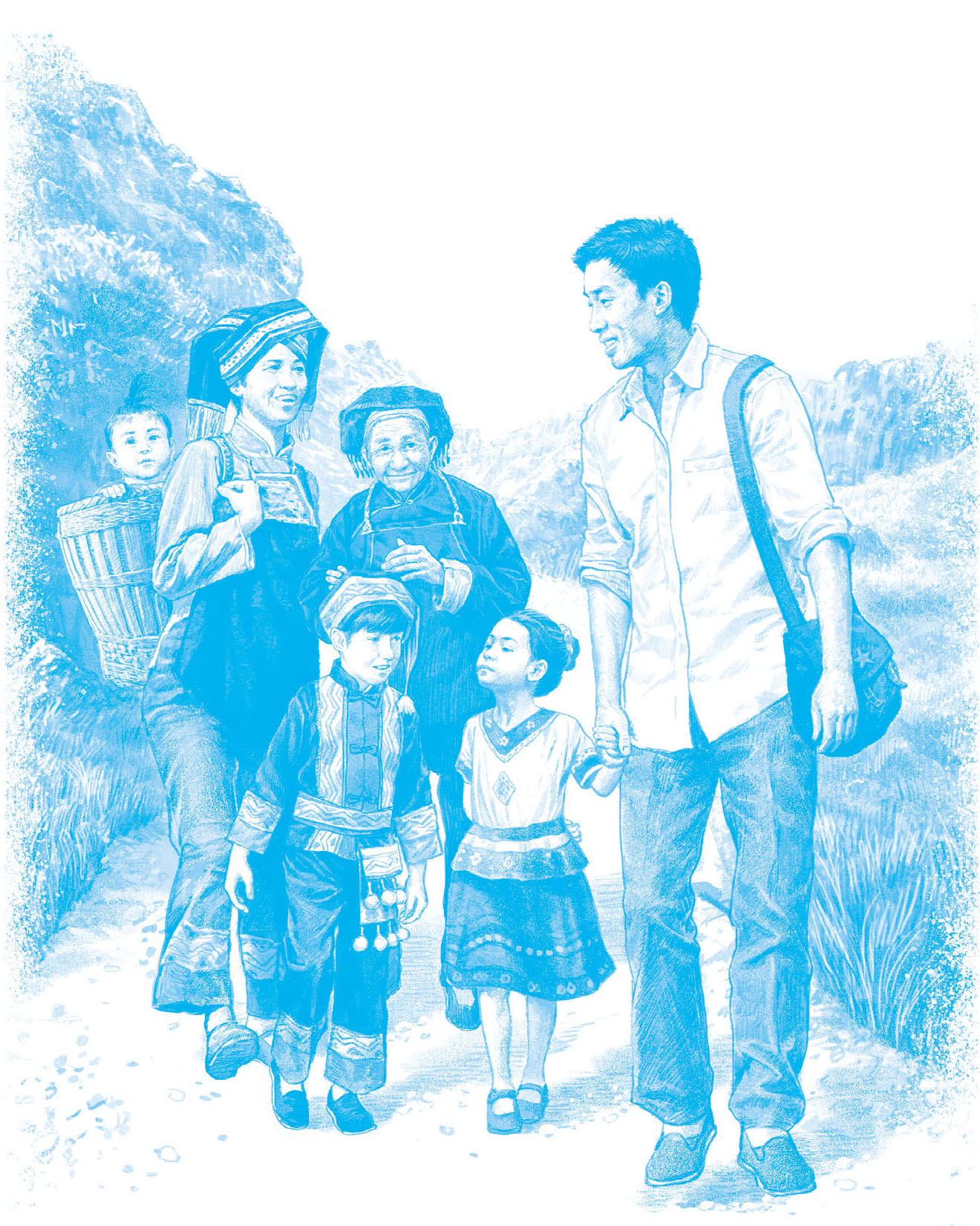 “走哟,我们搬家喽。”妈妈背起背篓里的小文秀,回头看看老屋,万般不舍。这一走,也不知什么时候再回来。