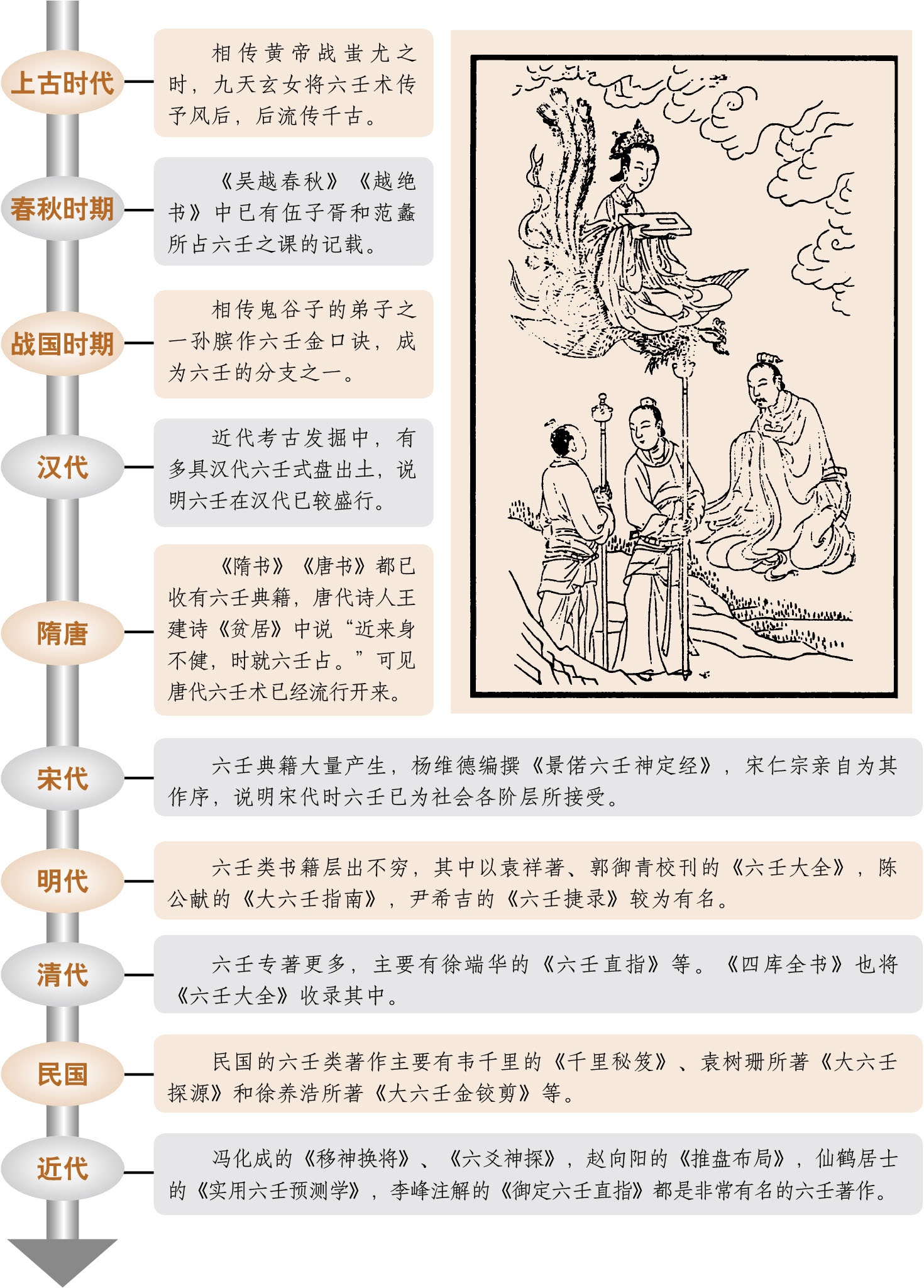 六壬源于《周易》是普遍被认可的观点,而从古籍中的记载可知,六壬在春秋战国之时已有所运用,查经据典,可粗略排出一条六壬术发展的轨迹。