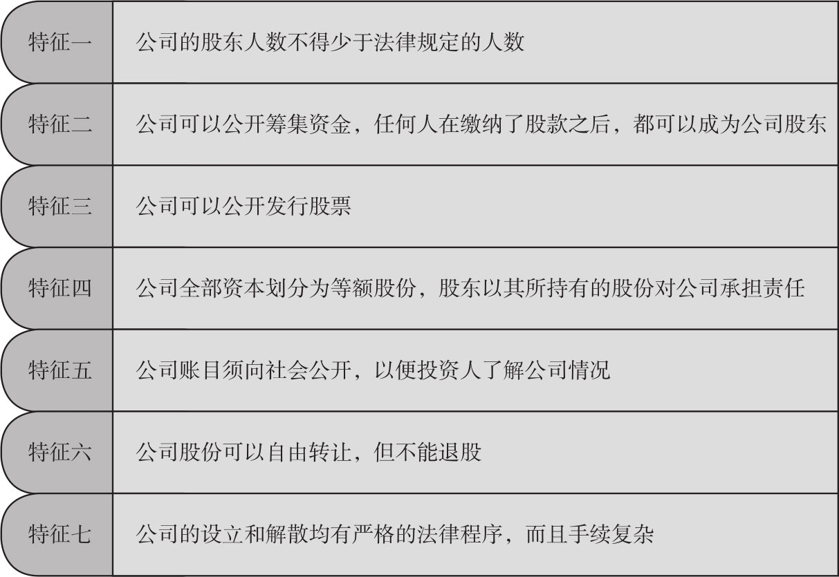 股份有限公司应具备以下特征,如图1-2所示。