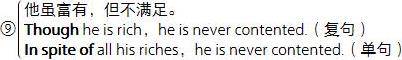 2. 介词短语(Prepositional-phrase),如:a. He is cheerful in spite of illness .(他不顾生病还是很快活。)b. He was obliged to leave the office on account of ill health.(他因病不得不停止办公。)