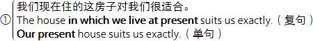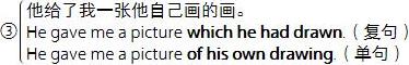 ④The house which he lives in is at the top of the hill.(以 Adjective Clause 为修饰语。)