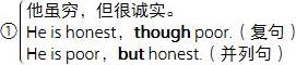 He is poor but(he is)honest.