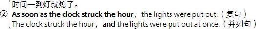 〔说明〕以上三者全是“随即”的意思,as soon as 的动词前后皆可用 Past;其他二者就是前用 Past Perfect,后用 Past。