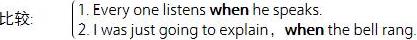 〔说明〕(1)句中的 when 为“从属连词”,(2)句中的 when,其前有逗号时为 and then 之意,所以是“并列连词”。