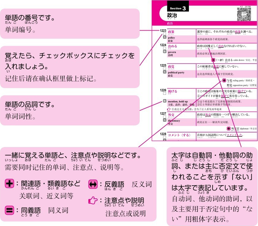 本书把日语能力考试中频繁出现的单词分为不同的主题,形成了各个章节。大家学习时,可按照章节顺序,也可从感兴趣的章节开始。