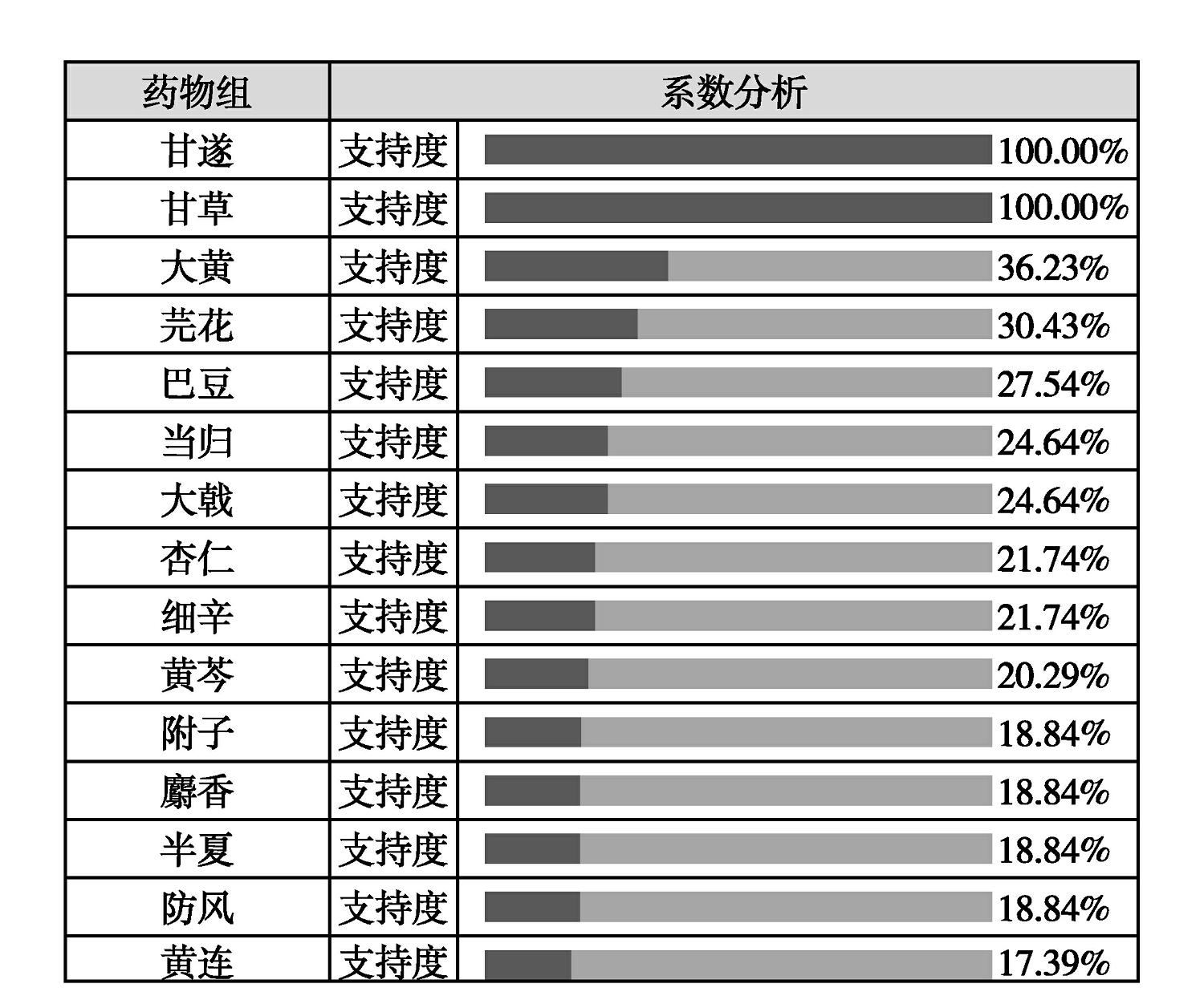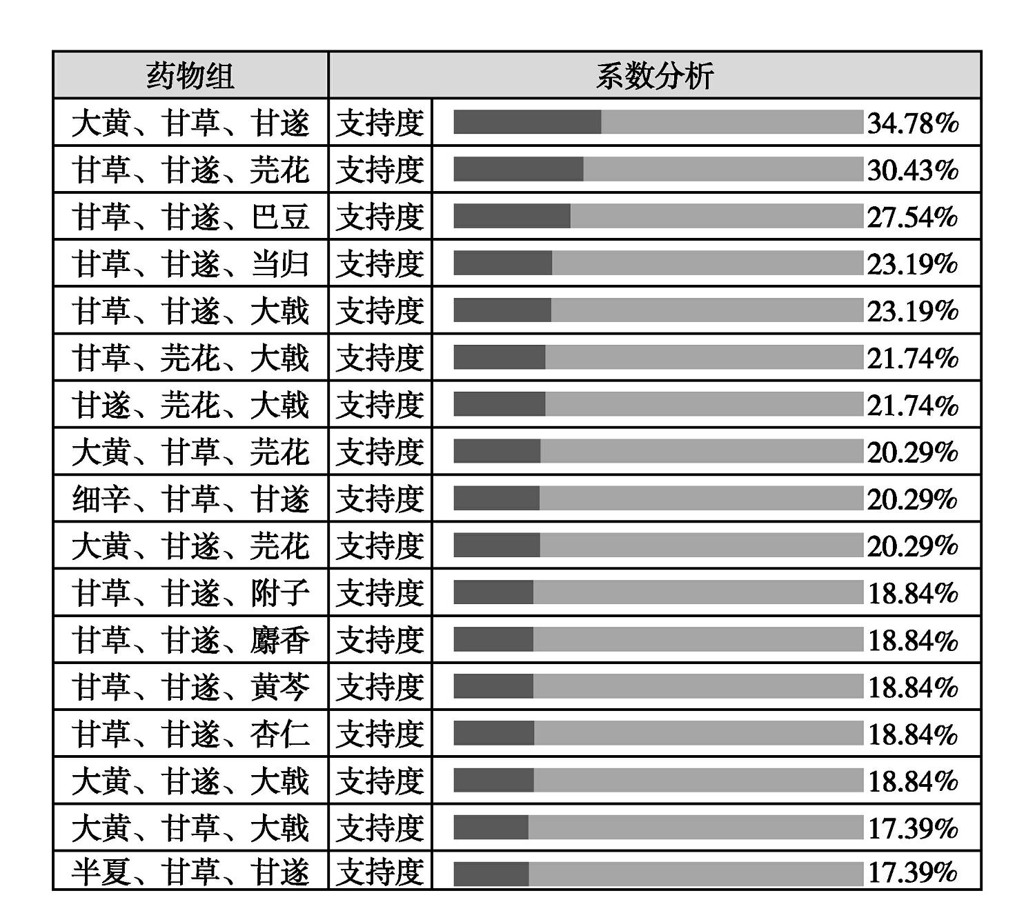 图2-3 甘遂、甘草反药配伍三味药组支持度