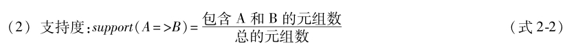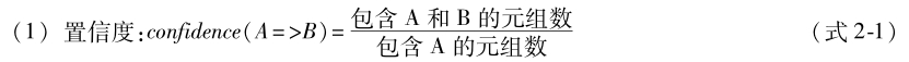 项的集合称为项集。包含 k 个项的项集称为 k -项集。集合{computer,ativirus_software}是一个二项集。项集的出现频率(支持计数)是项集的事务数,简称为项集的频率,支持率计数或者计数。如果项集I的出现频率大于等于预定义的最小支持度阈值,则I是频繁项集。