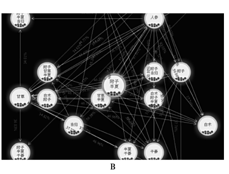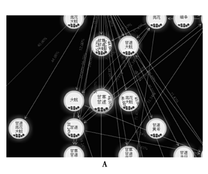 以甘草与甘遂在古代方剂中的反药配伍为例,可以看到关联规则可以发现其中隐含的关联关系(图2-1~图2-5)。