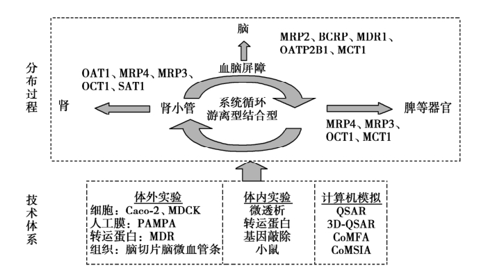 中药配伍后若产生不同的器官毒性,如肝毒性、肾毒性、心脏毒性、神经毒性等,表明各药配伍后其毒性成分在各器官分布特点不同。基于药物分布过程建立以下技术方法体系: