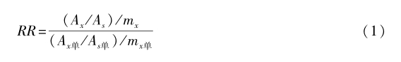 A x :合煎供试液中某化学成分的峰面积; A s :合煎供试液中内标物的峰面积; m x :该峰来源的药材质量; A x单 :单味药材供试液中对应成分的峰面积; A s单 :单味药材供试液中内标物的峰面积; m x单 :单味药材质量。