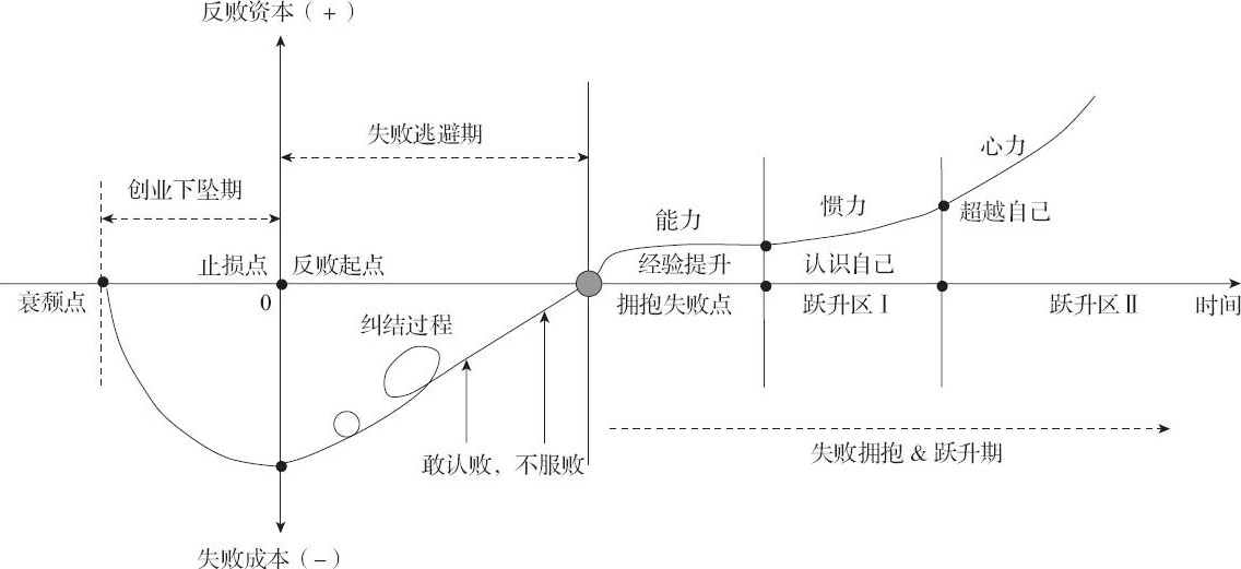 在访谈了近百位失败者、连续5年近距离跟踪和贴身观察创业的基础上,我们总结出了反败曲线(见图1-4)。