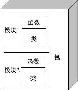 Python的程序由包(package)、模块(module)和函数组成。模块是处理某一类问题的集合,模块由函数和类组成。包是由一系列模块组成的集合。图5-1描述了包、模块、类和函数之间的关系。