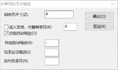 3)Python语法中不使用begin、end或{、}区分代码块,而是使用冒号和代码缩进的方式区分代码之间的层次关系。单击“制表缩进(S)”按钮,打开“制表符和文本缩进”对话框,设置Python代码的缩进方式,如图1-23所示。在使用IDE工具时,输入冒号,代码会自动缩进,用EditPlus也可以设置该功能。在“制表符尺寸(Z)”和“插入空格,代替制表符(K)”文本框中分别输入空格的个数,一般设置为4。选中“启用自动缩进”选项,在“开始自动缩进”文本框中输入“:”,单击“确定”按钮,保存设置。