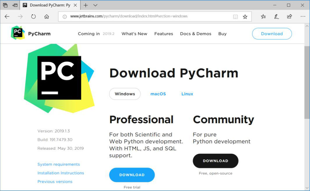 图1-16 PyCharm下载页面