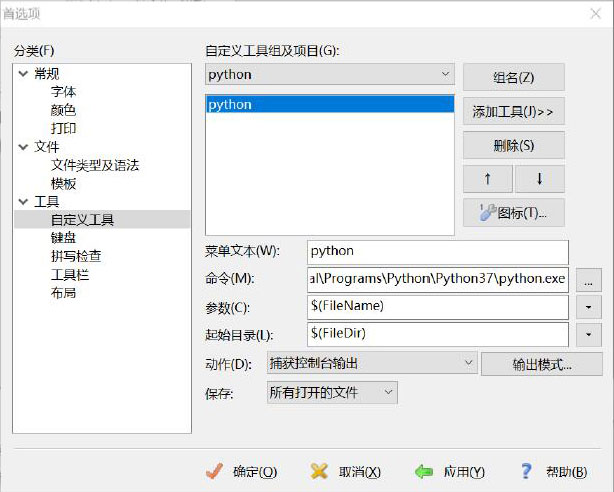 图1-21 在EditPlus中添加对Python的支持
