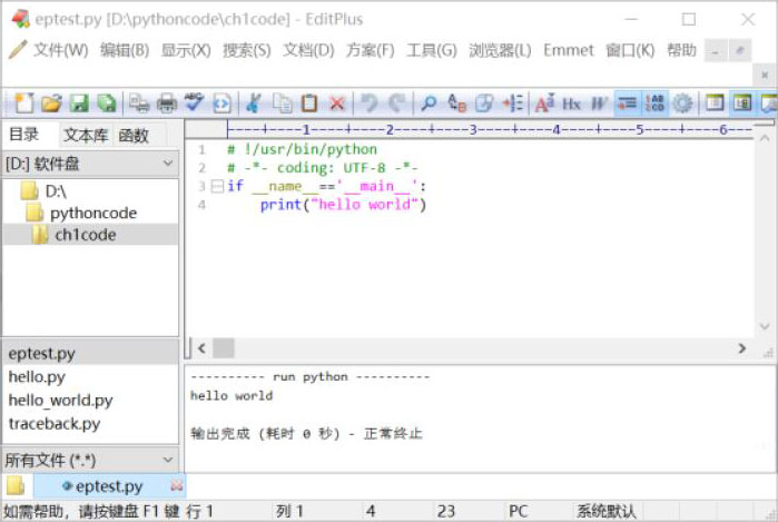 图1-25 EditPlus运行Python程序