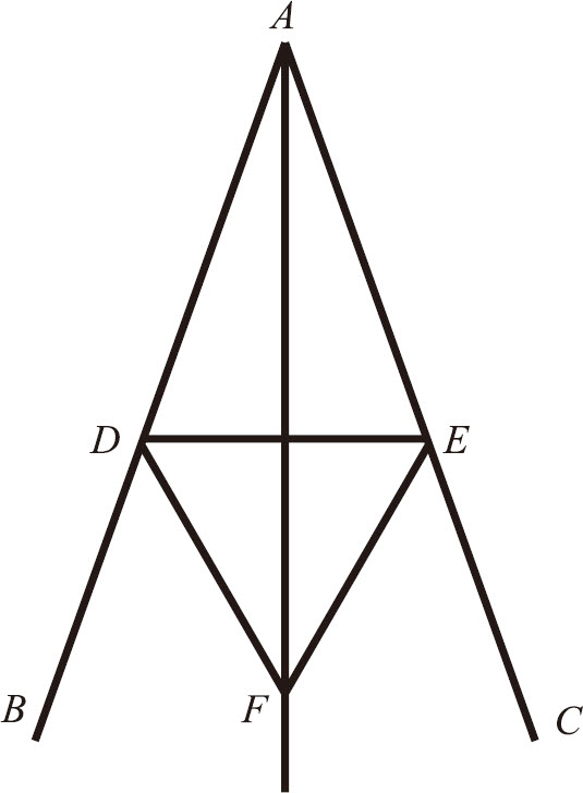 在 AB 边上任取一点 D ,在 AC 边上取一点 Ε ,使 AΕ = AD (命题I.3) ,连接 DΕ ,以 DΕ 为一边作等边三角形 DΕF ,连接 AF 。