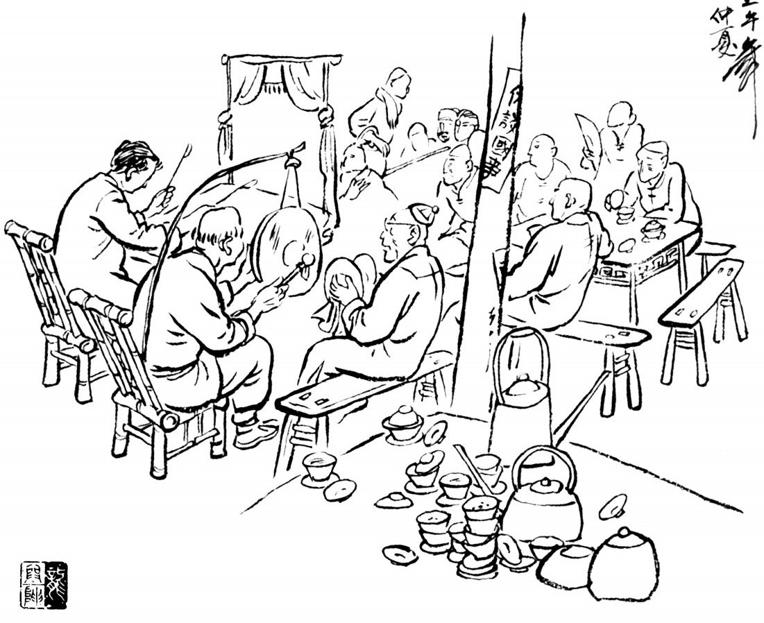 过去没有电影院,更没有“纯K”,要娱乐也只有去茶馆,听评书、看戏都是茶馆,甚至最开始放电影也在茶馆。
