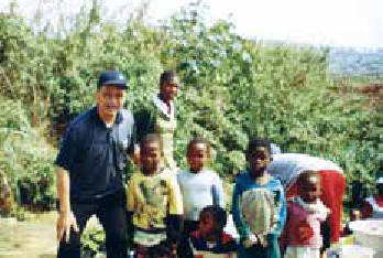2001年9月5日,在南非德班参加世界反种族主义大会期间与当地妇女儿童合影