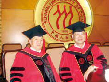 2009年6月23日,在年度博士学位授予仪式上与陈先达教授合影