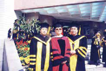 1999年10月16日,与学生洪大用、张建新在博士学位授予仪式上
