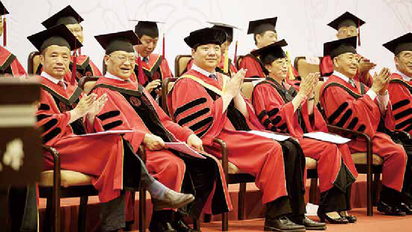 2014年6月24日,与校领导和学位评定委员会成员一起出席2014年博士学位授予仪式