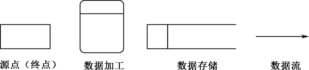 数据流程图包括 4 种基本成分,分别用 4 种基本符号表示,如图 2.12所示。