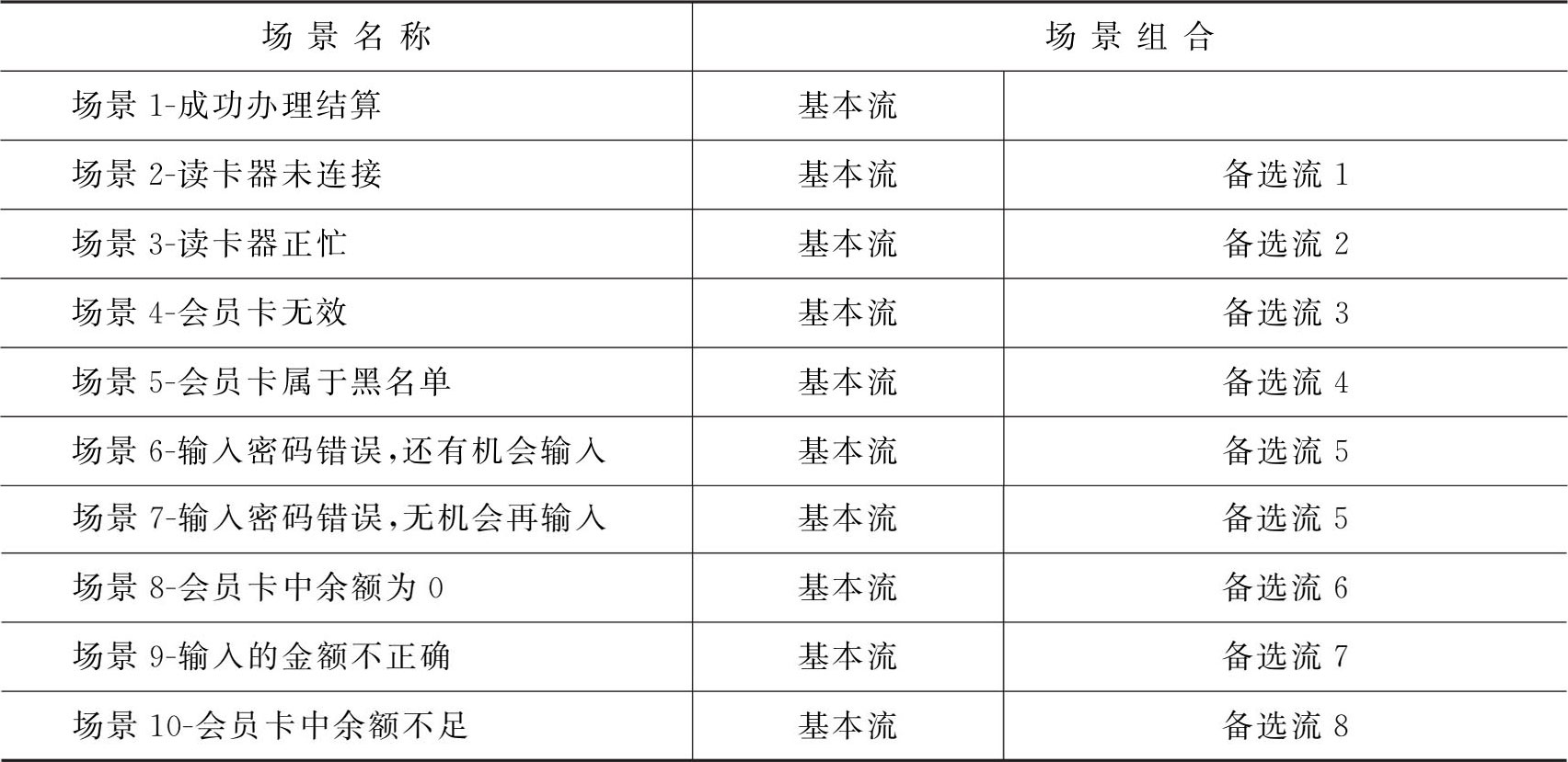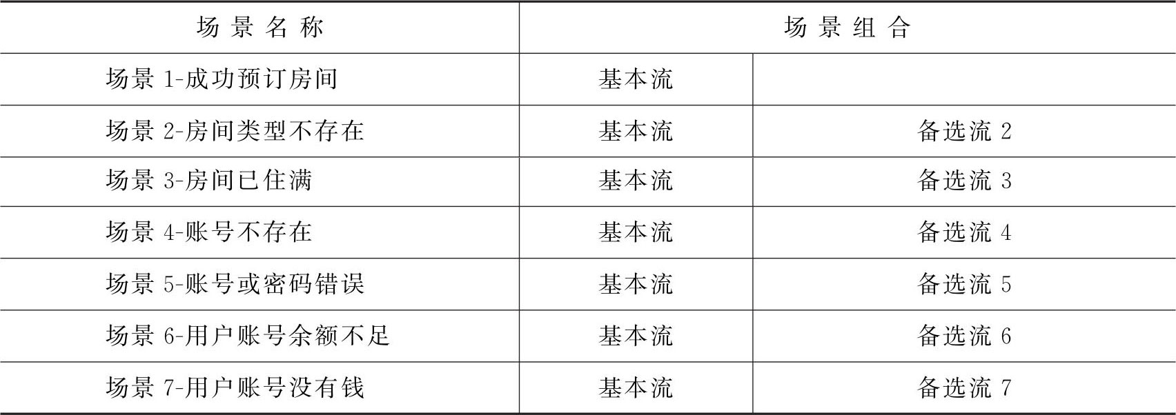 第2步,依据基本流和各备选流,生成不同的场景,如表7.3所示。