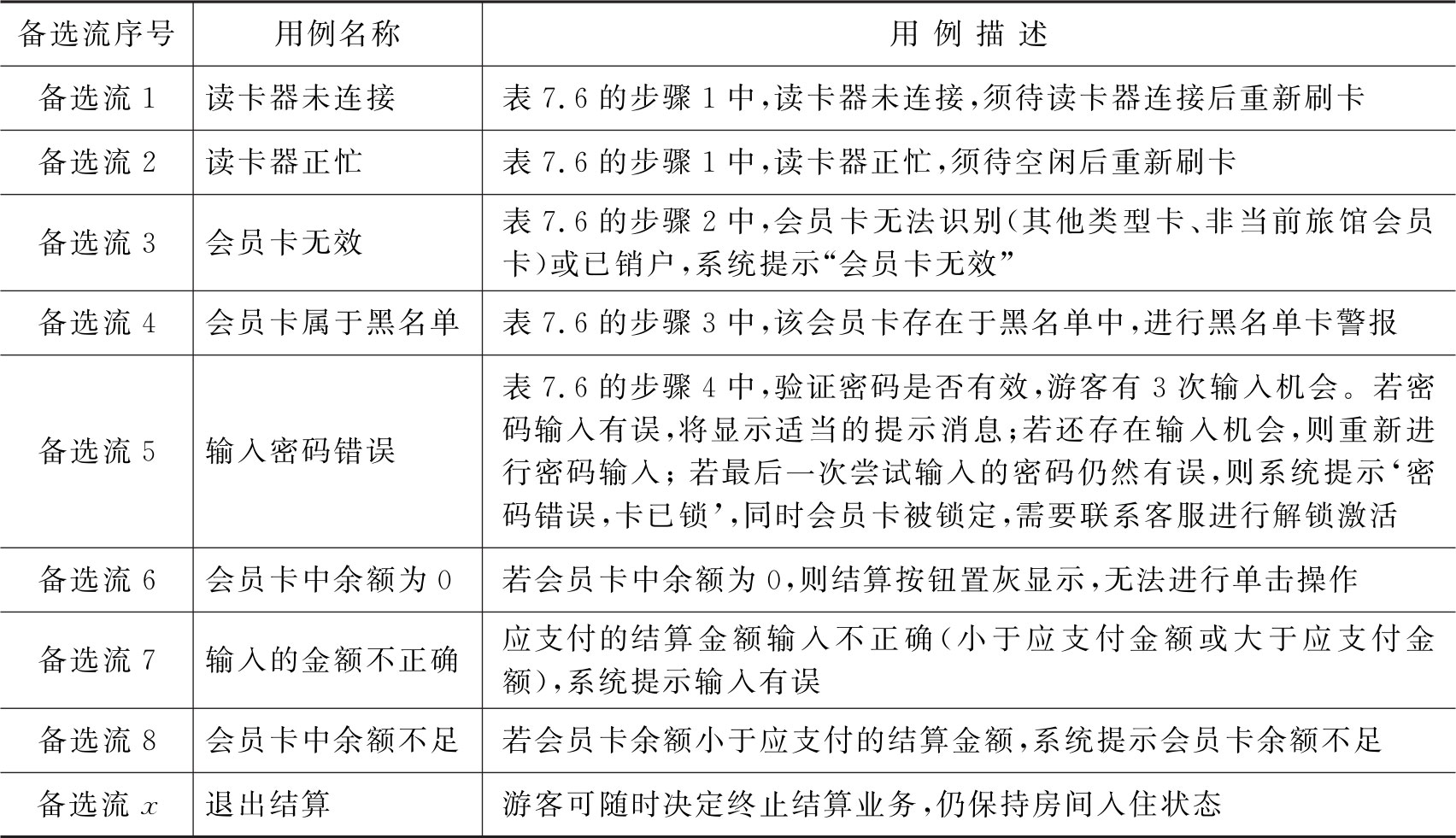注意 : 备选流 x (退出结算)可在任何步骤中发生,故标识为未知数 x 。